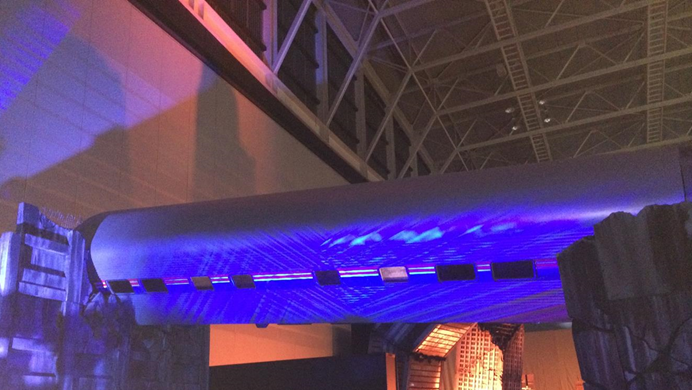 メインのスクリーンが4枚あって、サイドに更に2枚ずつあって、奥にはオプティマスプライムとバンブルビーが配置されているという!!