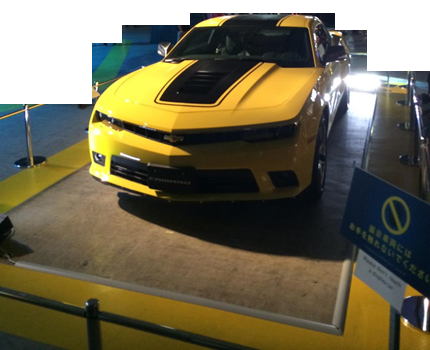 各トランスフォーマーのビークルモードや彼氏の車等の展示(スティンガーは何故赤くないのか!)