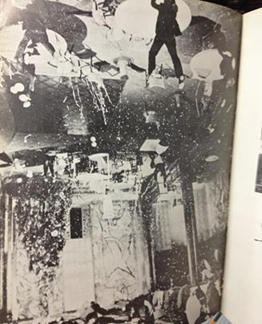 パーティ会場が逆さまになり大惨事になる様子。